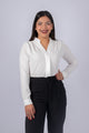 La Blusa Lissa está confeccionada en Seda Francesa, ligera, transpirable y resistente a las arrugas, garantizando una apariencia impecable durante todo el día.