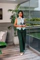 Este chaleco de corte princesa, con botones forrados, destaca por su diseño elegante y femenino. El forro de seda satinada le da un acabado suave y lujoso, mientras que la hebilla ajustable permite un ajuste perfecto en la cintura. Tiene unos bolsillos simulados de sastrería para agregarle un toque más de elegancia, es ideal para complementar tanto looks formales como más relajados.