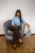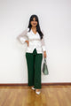 El pantalón Elena está confeccionado en tela Banfield, una fibra fresca, cómoda y con movimiento, que lo convierte en una prenda atemporal.