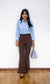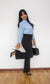 Presenta un tiro alto con pretina ancha y presillas diagonales, detalles que aportan un acabado distintivo, delicado y elegante. En la parte posterior incorpora pinzas que realzan la cintura y las caderas, mientras que el entalle en la entrepierna y la caída acampanada que inicia de la rodilla generan una silueta alargada y estilizada. Es una prenda versátil e ideal para cualquier ocasión, combinando comodidad, estilo y sofisticación en un solo diseño.