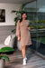 El vestido cloe , confeccionado en una tela waffle, de textura ligera y caída natural que aporta distinción y sutileza.