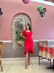 El vestido está confeccionada en tela Venecia, fresca, ligera y con una suave caída. Su textura al tacto es delicada, ideal para un look cómodo y elegante.
