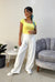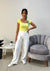 Top de manga corta con escote cuadrado, diseñado para resaltar la zona del cuello y los hombros de manera elegante y equilibrada. Presenta una silueta recta con calce cómodo, ideal para el uso diario. Su diseño permite crear looks frescos y femeninos, combinándolo fácilmente. Es una prenda versátil que se adapta tanto a outfits casuales como a propuestas más arregladas, perfecta para climas cálidos y estilos modernos.