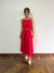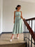 El vestido se caracteriza por sus tirantes delgados, su silueta en corte en A y caída fluida que brinda comodidad y libertad de movimiento. Presenta un diseño limpio y minimalista, complementado con vens laterales, que aporta un detalle funcional y estético, facilitando el desplazamiento y dando un toque moderno a la prenda. Los acabados están pensados para un uso cómodo y continuo, ideal para climas cálidos.